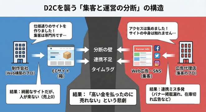 2. 箱(サイト)だけでは売れない!D2Cを襲う「集客と運営の分断」問題