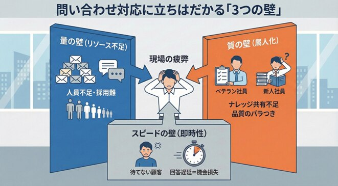 CSの現場マネージャーが日々直面している課題は、大きく分けて「量」「質」「スピード」の3つの壁に集約されます。