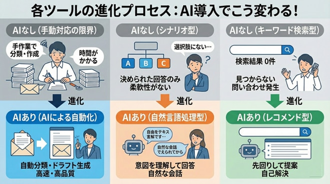 2. 【徹底比較】メール・チャット・FAQにおける「AIあり・なし」の違い