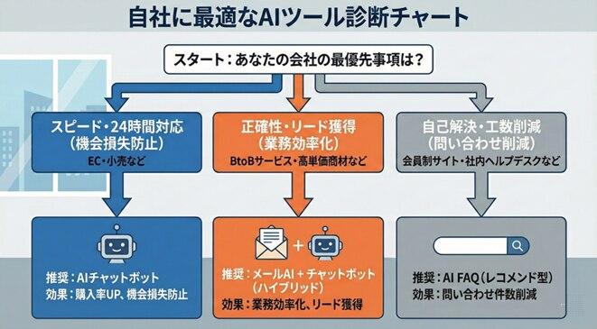 BtoBサービス・高単価商材(正確性とリード獲得重視)→ メールAI or ハイブリッド
