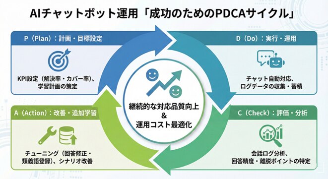 AIチャットボット導入における最大の失敗要因は、「導入して満足し、放置してしまうこと」です。