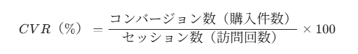 ・セッションベース: 同一人物が2回訪問して1回購入したら、分母は2、CVRは50%。