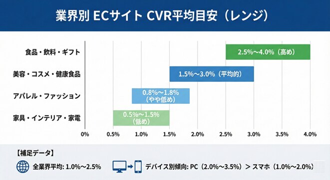 2. 【業界別・デバイス別】ECサイトにおけるCVRの平均目安