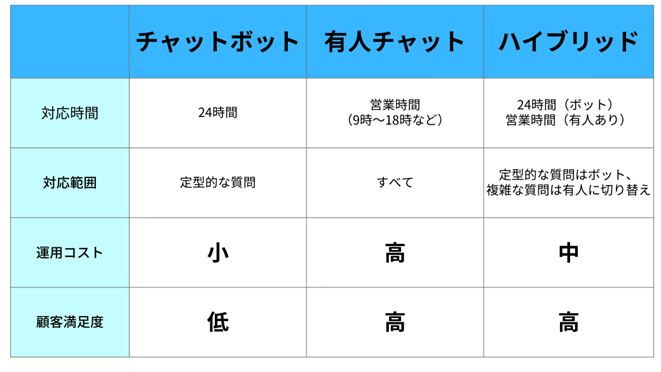 チャット接客ツールには「チャットボット型」「有人チャット型」「ハイブリッド型」の3種類があります。自社に最適な組み合わせを選ぶことが成功の鍵です。