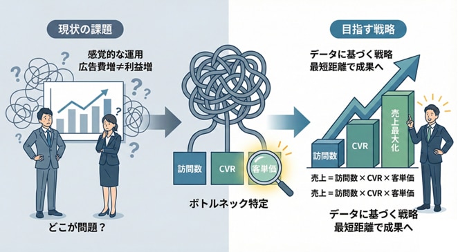 「広告費を増やしてアクセスは増えたのに、思うように利益が残らない」「どこを改善すれば売上が上がるのか、具体的な優先順位がわからない」