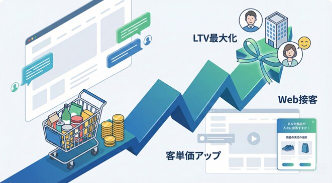 本記事では、Web接客ツールを活用して「ついで買い」を自然に促すテクニックや、一度購入したお客様を優良顧客へと育てるLTV(顧客生涯価値)戦略について解説します。