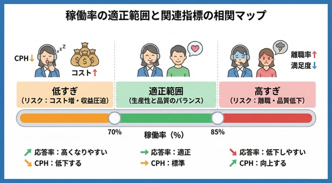 コールセンターの稼働率は、センターの生産性を測る「物差し」であると同時に、現場の健康状態を示す「バロメーター」でもあります。