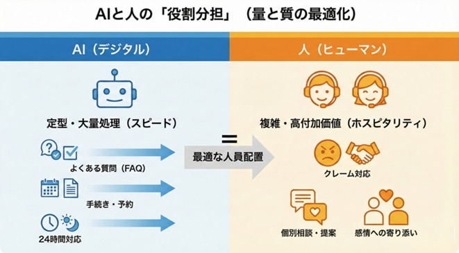 これにより、残った少数の精鋭オペレーターは、より複雑で付加価値の高い「人にしかできない接客」に集中できるようになります。