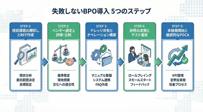 2.失敗しないためのBPO導入手順:5つのステップ
