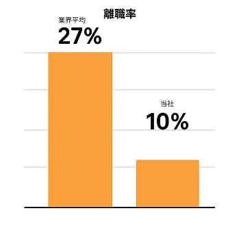 充実したキャリア支援を行っている人材だから、 業界平均と比較して低離職率